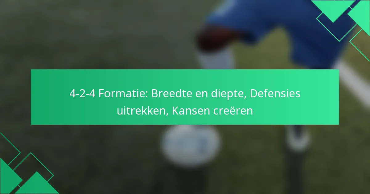 De 4-2-4 formatie is een tactische opstelling in het voetbal die een robuuste verdediging combineert met een agressieve aanvallende benadering, met vier verdedigers, twee centrale middenvelders en vier aanvallers. De inherente aanpasbaarheid stelt teams in staat om hun strategieën af te stemmen op de sterke en zwakke punten van hun tegenstanders, waardoor de prestaties in verschillende wedstrijdsituaties worden geoptimaliseerd. Deze strategische flexibiliteit wordt verder versterkt door gedefinieerde spelersrollen en effectieve overgangen, waardoor teams zowel aanvallende druk als defensieve stabiliteit gedurende de wedstrijd kunnen behouden.